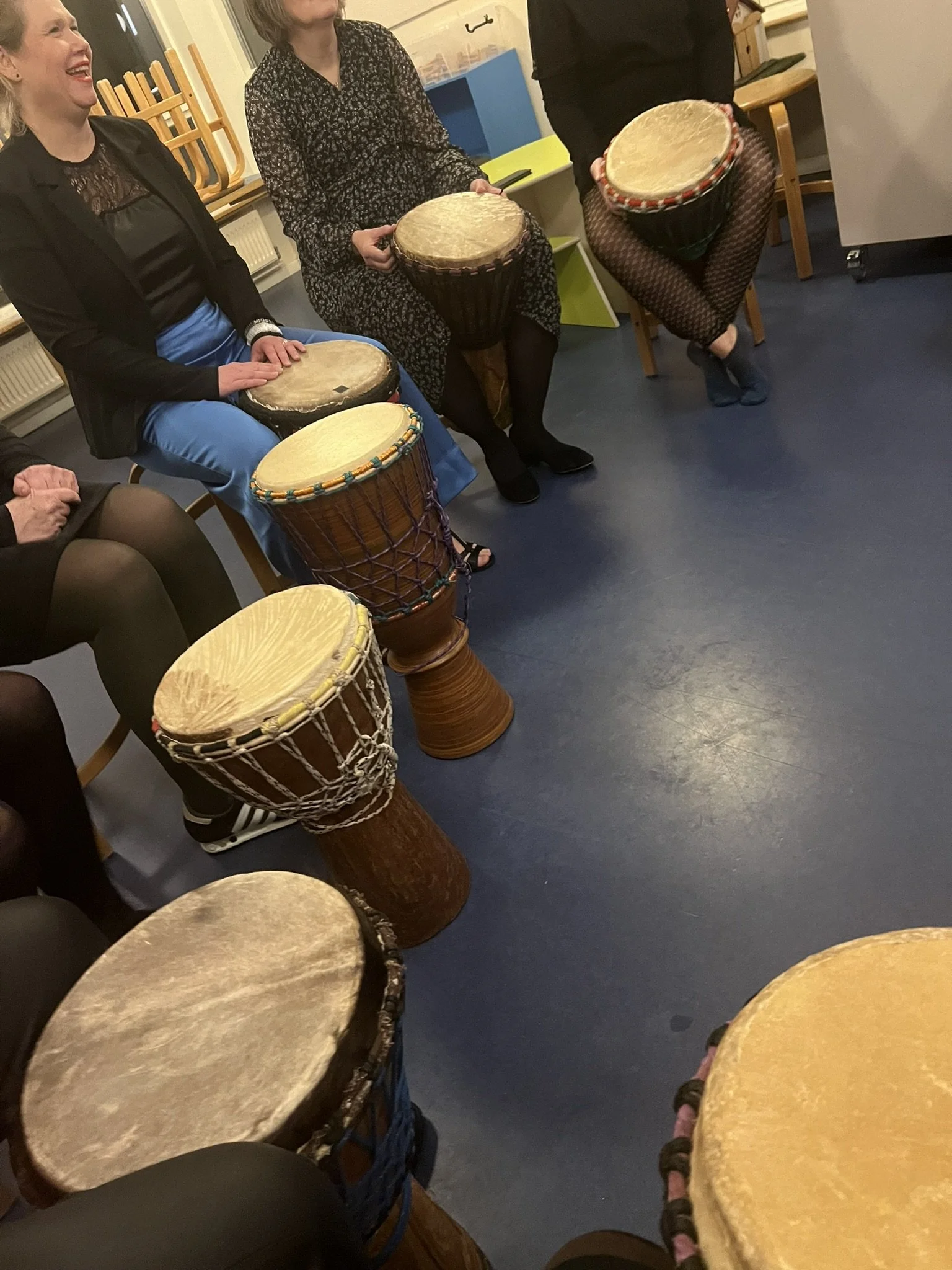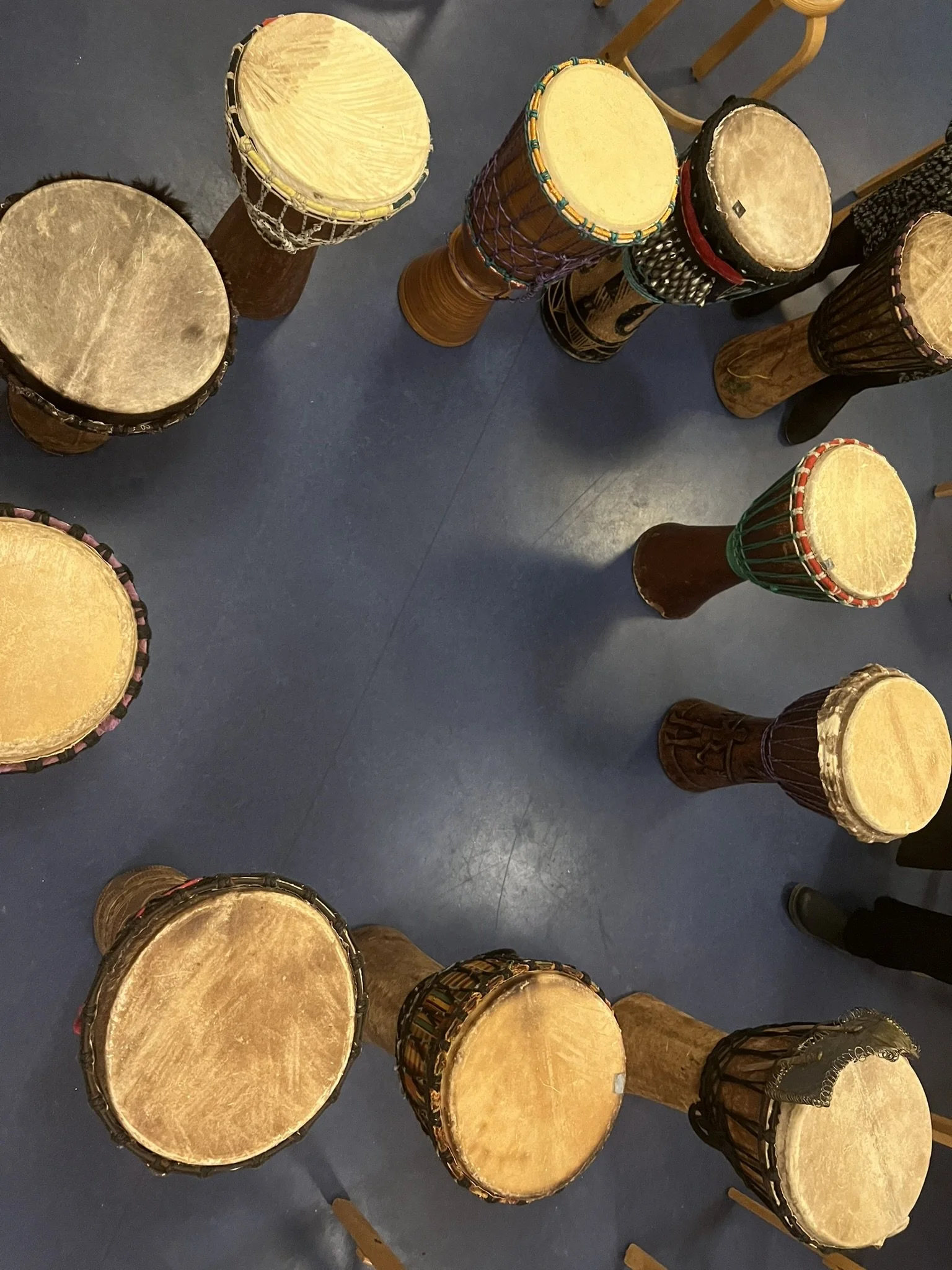 Alle deltagere får udleveret en djembe og vil mestre den.